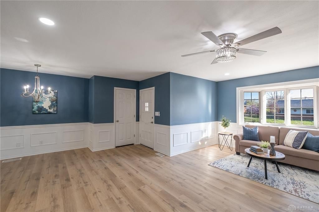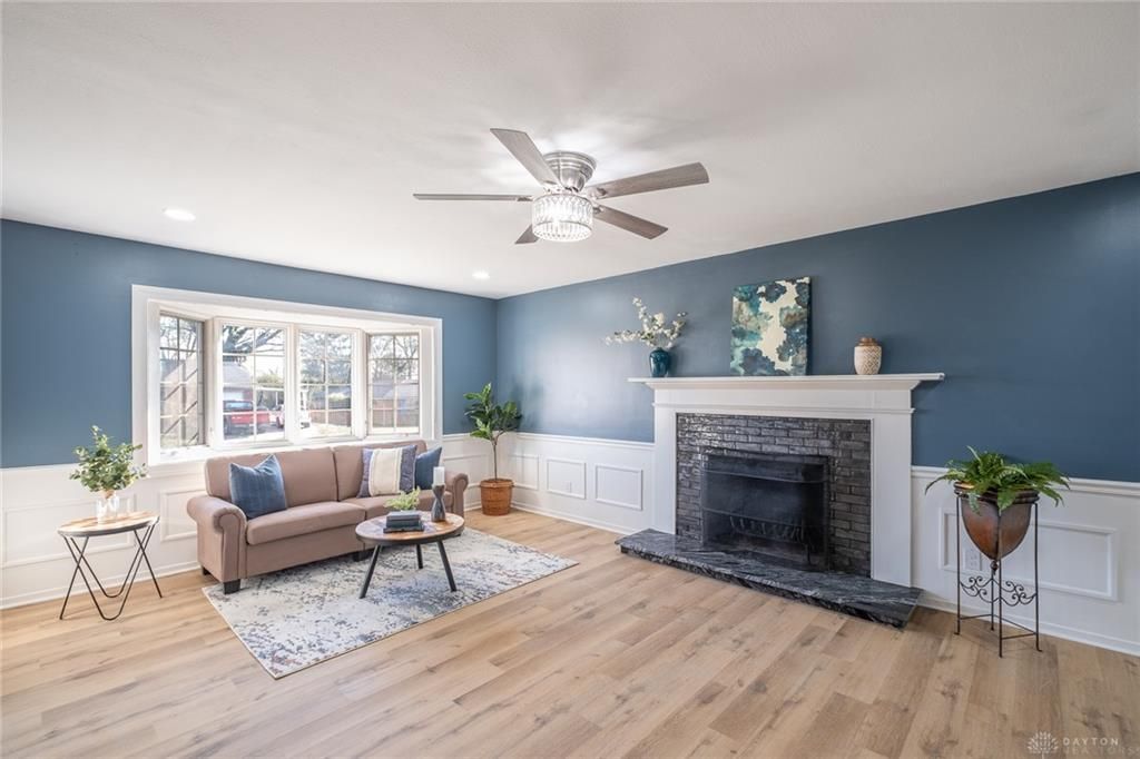 Redone from top to bottom, this adorable Kettering ranch is ready for new owners! Step inside to the generous family room featuring a bay window, wainscoting, LVP flooring, and a striking woodburning fireplace! Built-in shelving for displaying china or other treasures makes the adjoining dining area feel elevated. For the cook, the kitchen boasts quartz counters, stainless appliances, a subway tile backsplash, and crisp white cabinetry which contrasts beautifully with the beamed ceiling! Down the hall, you’ll find three spacious bedrooms, one with a trendy accent wall, and an updated hall bath. Outside, enjoy the patio and large corner lot! Wonderful location close to shopping and dining!