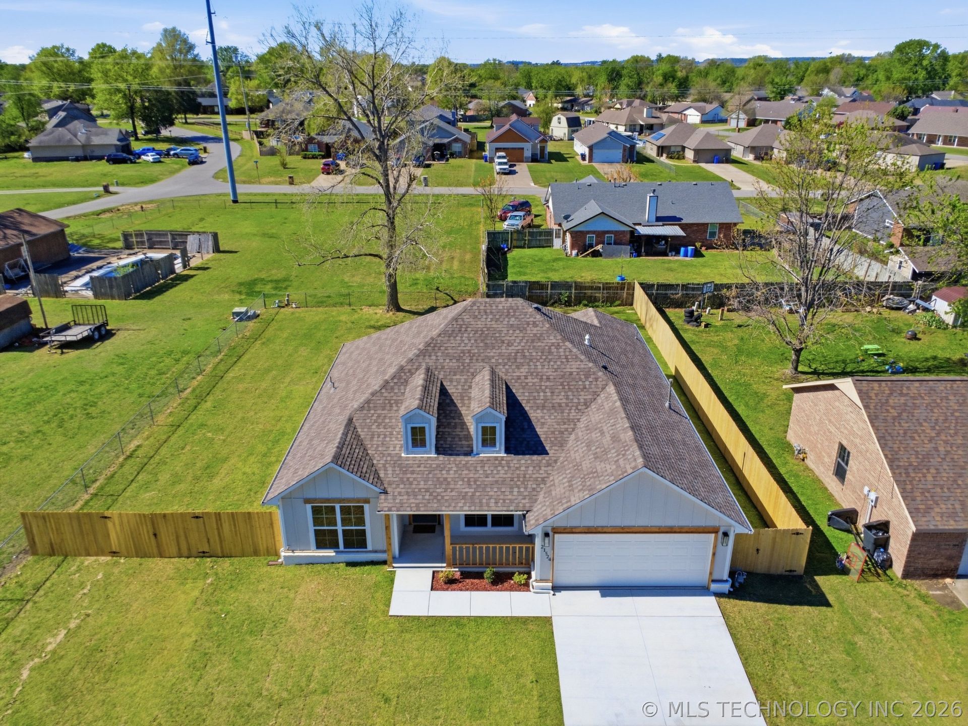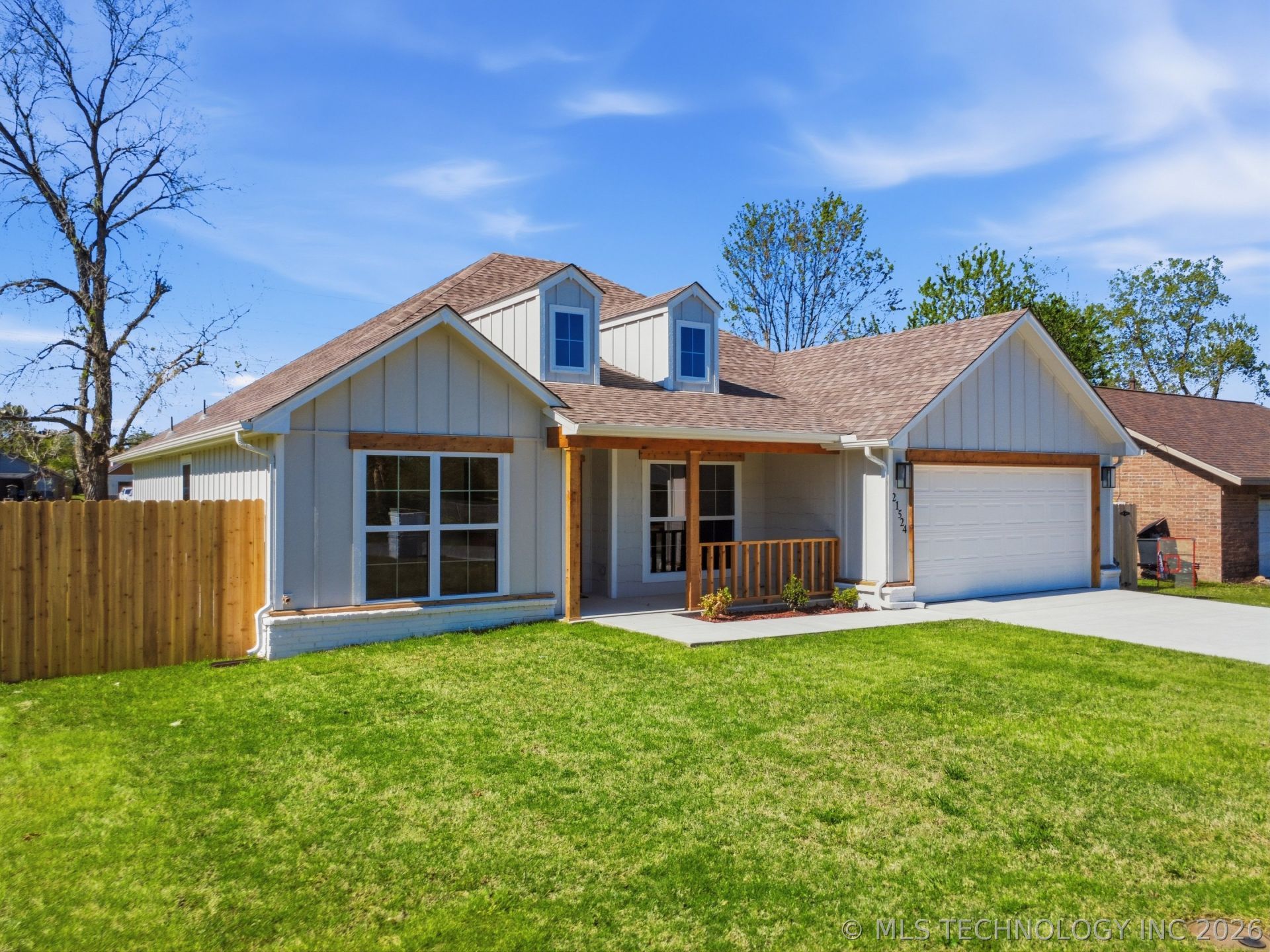 NEW EXTERIOR PAINT in transitional colors. NEW PRICE Reductions! NEW CONSTRUCTION! NEW PRIVACY FENCE w/ gates! 1 year builder's warranty included! NO HOA in Broken Arrow Schools! This beautifully designed Energy Star built home sits in an established neighborhood on a generous & fully sodded lot, featuring covered front and back porch, a grand entry with soaring vaulted ceilings, LVP flooring, and abundant natural light. The spacious open layout includes a gorgeous rock fireplace with ventless gas & gas logs, vaulted ceilings with distressed beams and ambient high/low lighting, and a modern farmhouse kitchen with granite countertops, Energy Star stainless steel appliances, gas stove, white farmhouse sink, bar seating, and coffee bar. Flexible 4th room can serve as a bedroom, office, or hobby room. The luxurious primary suite offers tray ceilings, a large walk-in closet, walk-in shower, floating shelves, and soaking garden tub with a textured privacy window for so much sunlight! Additional highlights include a large laundry room, excellent storage, Energy Star windows, bib insulation, high-efficiency furnace, and a generous lot. Conveniently located near the highway, grade school, shopping, eateries, Rose District, and Bass Pro Shops. NO HOA and 1-year builder's warranty included! Hurry-this one won't last! So many extras! Property is fully fenced for your babies and fur babies! COME SEE!
