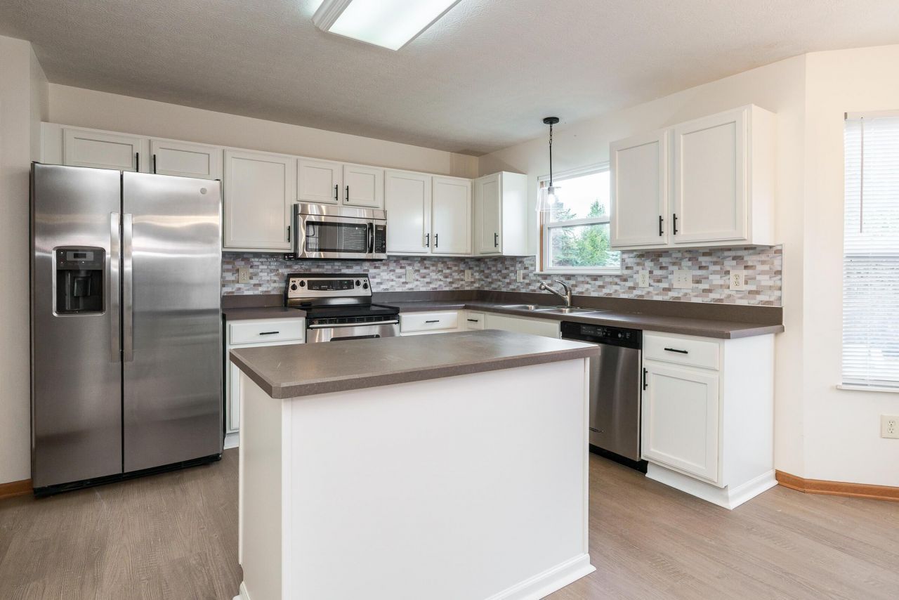 Tucked away at the back of Hilliard Meadows, this lovely home offers a spacious backyard with a paver patio and numerous recent updates, including a newer furnace system (inside) (March 2021), water heater (March 2022), and refrigerator (November 2020). The kitchen has also been REFRESHED with new LVP flooring, updated lighting, a stylish backsplash, and freshly painted cabinets with new hardware. Inside, you're welcomed by a soaring two-story entry and a quiet front-facing first-floor den/office. The main level features an oversized family room with a fireplace, a generous dining area, and a kitchen with an island and stainless steel appliances, along with a convenient first-floor laundry. The large full basement (over 900 sq ft) offers excellent potential for finishing. Upstairs, the vaulted owner's suite includes a primary bath with double sinks, a separate tub, walk-in shower, and a spacious walk-in closet. Two additional bedrooms and a full bath complete the second floor. Just move in and enjoy!