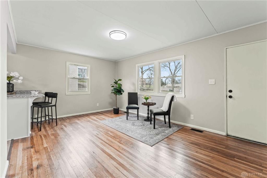 Discover this beautifully updated two-bedroom bungalow nestled in the quiet charm of the Belmont neighborhood in East Dayton. Step inside to find gleaming hardwood floors and new living room windows that fill the space with natural light. A breakfast bar seamlessly connects the living area to the freshly remodeled kitchen, featuring brand-new shaker cabinetry, granite countertops, stainless steel appliances, updated flooring, and a deep single-basin sink perfectly positioned beneath the kitchen window. Unwind at the end of the day in the fully renovated bathroom, complete with a new tub, subway-tiled shower, updated vanity and fixtures, new flooring, and a stylish board-and-batten accent wall. Additional highlights include a private laundry and utility room with walkout access to the backyard, plus a detached one-car garage. Located just blocks from Belmont Park and offering easy access to I-35, this move-in-ready home combines modern updates with everyday convenience.