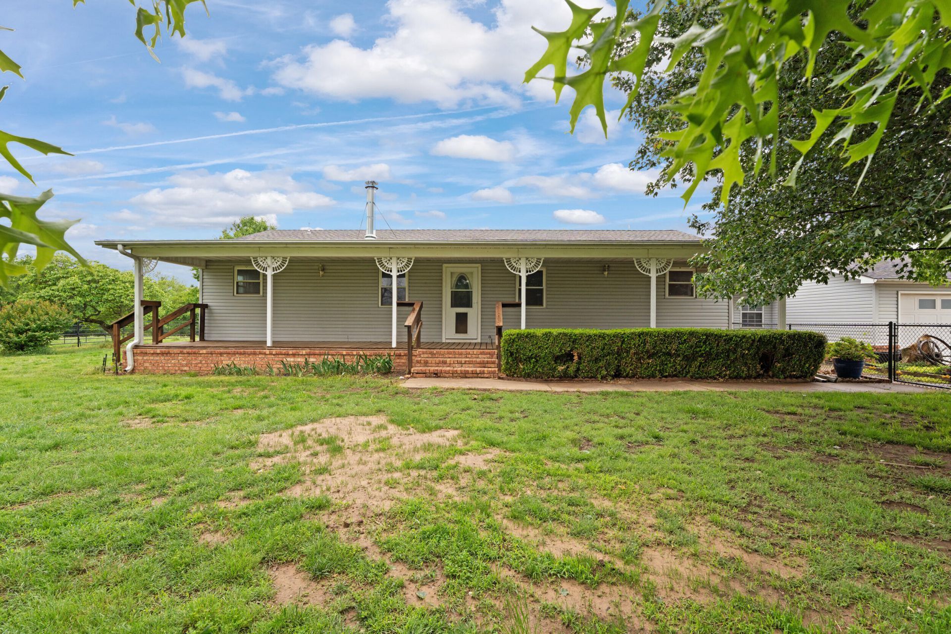 NEW ON THE MARKET!! Well-maintained 3 bed, 2 bath ranch home on 30 acres m/l featuring an open concept and a split bedroom layout, spacious kitchen with oversized island, granite countertops, new flooring and updated windows, ALL NEW STAINLESS STEEL APPLIANCES STAY even the new washer and dryer in the large laundry room and a huge mud room. Property includes two stocked ponds, a creek that runs across the backside, working pens-livestock ready, a lean too and a storage shed. A new shop added makes this mini ranch in Green Country move in ready! Enjoy quiet country living just minutes from the lake and a short drive to Claremore and Pryor.