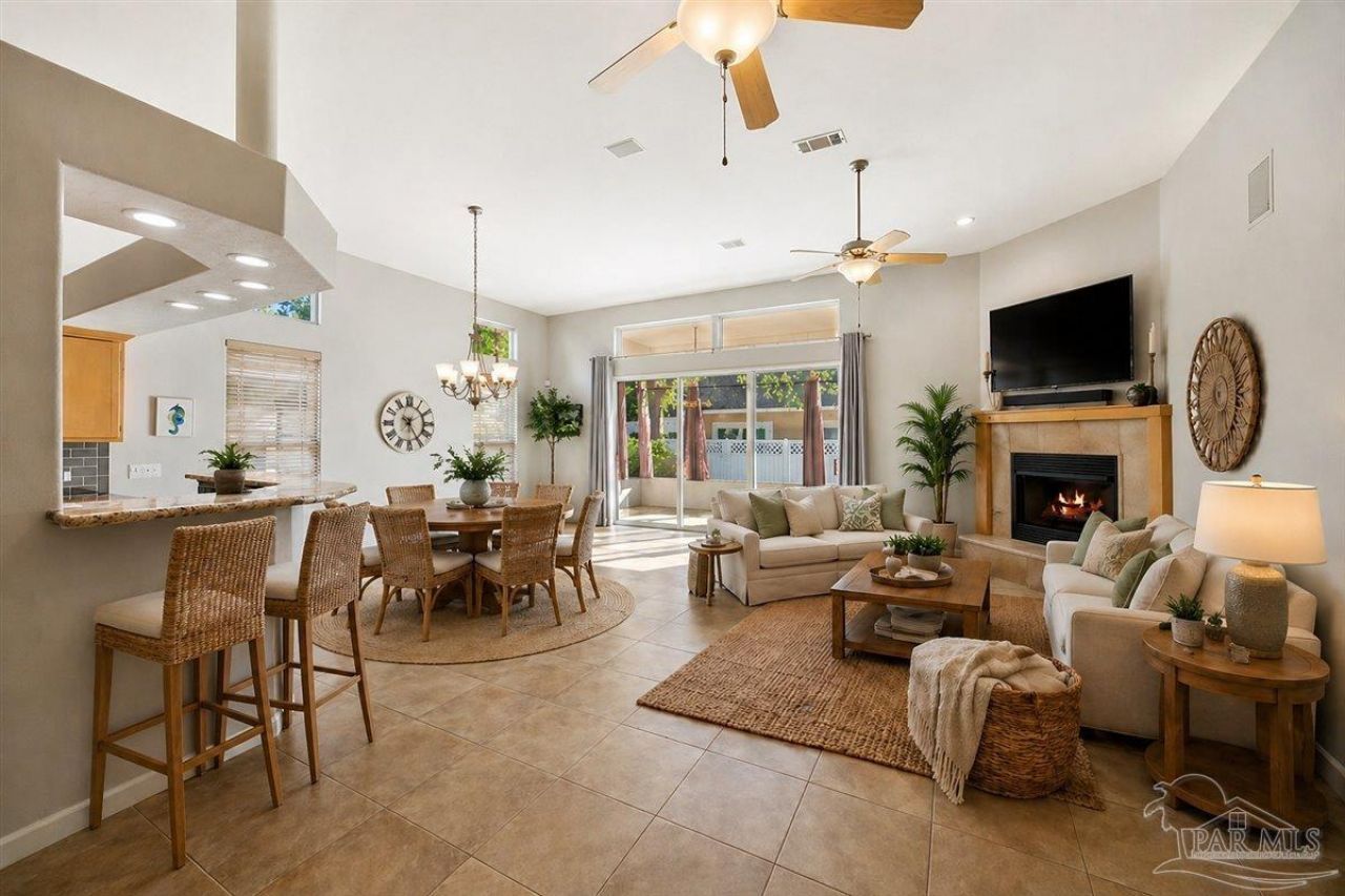Welcome to Your Coastal Sanctuary in Heron's Forest! Discover the pinnacle of Emerald Coast living in Heron's Forest, undeniably one of Pensacola's most sought-after gated communities. This neighborhood isn't just a place to live; it's a lifestyle. Residents enjoy exclusive access to scenic walking trails, a sparkling community pool, and well-maintained tennis and pickleball courts-perfect for active weekends right outside your front door. For our military families, the location is a strategic masterpiece. Situated right outside the back gate of NAS Pensacola, your commute is literally seconds away if you are assigned to the base. It is an unbeatable advantage that we know makes all the difference when balancing work and Florida living. Inside this 3-bedroom, 2-bathroom, 2,128-square-foot home, an expansive, open floor plan welcomes you. High ceilings, custom plant ledges, and a cozy gas fireplace anchor the living space, creating the perfect environment for entertaining. The kitchen is the heart of the home, featuring a large center island, gas stove, stainless steel appliances, and abundant counter space for the home chef. Retreat to the sprawling primary suite, complete with an elegant tray ceiling and a luxurious en-suite bathroom featuring a jetted jacuzzi tub, separate glass-enclosed shower, and a large double vanity. Need a dedicated home office? The third bedroom, accessible via beautiful French doors, provides the ultimate flexible layout. Step through the sliding glass doors to your private, screened-in porch-ideal for sipping morning coffee. The privacy-fenced backyard, complete with a sprinkler system, offers a tranquil outdoor oasis, while the 2-car side-entry garage provides ample storage. Beyond the gates, you are just minutes from the stunning white sand beaches of Perdido Key and downtown Pensacola's vibrant dining scene. Ready to secure this unmatched location? Reach out to Gregg Costin for your exclusive tour! 850-266-5005